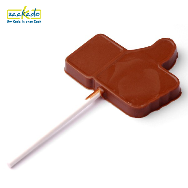- ‘I Like’ duim, gemaakt van de allerbeste kwaliteit Belgische chocolade, als lolly op een stokje