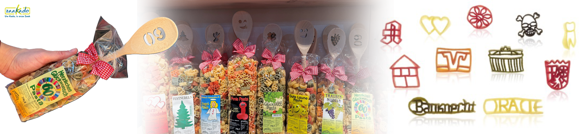 Custom made pasta biedt een unieke manier om jouw merk, organisatie of boodschap te laten zien. Origineel en persoonlijk en dat maakt indruk. Bij ZaaKado werken we met hoogwaardige pasta uit Duitsland, verkrijgbaar in vele standaard vormen, maar ook volledig in jouw eigen vorm. Denk aan je logo, een productvorm of een speciale boodschap. Door deze creatieve twist wordt pasta ineens een origineel en persoonlijk relatiegeschenk, perfect om indruk te maken bij klanten, collega’s of medewerkers.