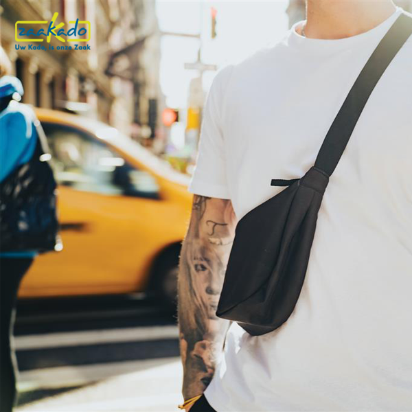 Ontdek de perfecte metgezel voor elke dag: een duurzame halvemaan tas. Bedrukt met uw logo natuurlijk. Want deze relatiegeschenken vallen op en uw naam of merk dus ook! De sling bag is een veelzijdige unisex stijl tas, vervaardigd uit Aware™ gerecycled polyester. Ontworpen om comfortabel tegen je lichaam aan te dragen. De tas biedt het comfort en stijl voor een active lifestyle. Ondanks zijn compacte formaat biedt het tasje veel ruimte voor essentiële items zoals een smartphone en portemonnee. En uw logo zetten wij prachtig op de zijkant(en) van elk exemplaar. Voor jongeren, scholen, het onderwijs, de zorg, de horeca, op beurs, festival of ander event. Deze hippe tassen zijn een eyecatcher bij elke gelegenheid!