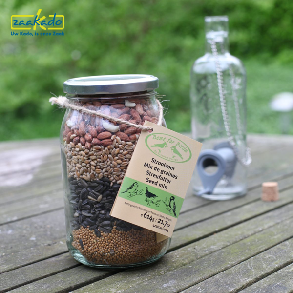 - Personalisatie: ZaaKado kan dit vogelvoer geschenk op verschillende manieren personaliseren. Met uw logo, tekst of boodschap in full colour. Bijvoorbeeld met een sticker, etiket, label en/of begeleidend kaartje. Vraag ons gerust naar de mogelijkheden!